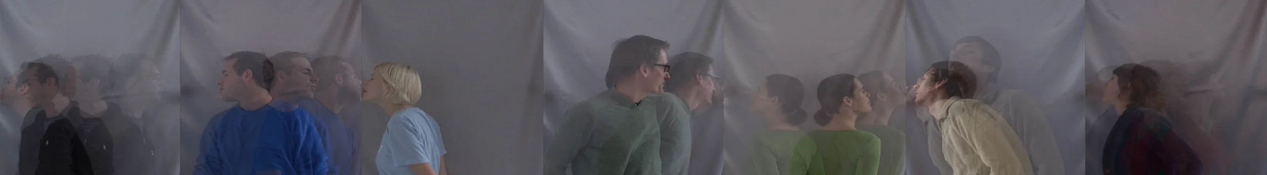 Two people stand close, blowing bubbles. As the bubbles lose their sugar through mastication, they grow larger, sometimes pressing against the bubble of the other, sometimes building a bridge. As time progresses, the bubbles begin to intertwine. The bubbles in this work serve as a metaphor for language, symbolically exploring patterns of communication.